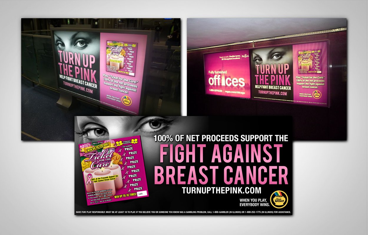 Various quality of life ticket campaigns for the Illinois Lottery. Design pieces included: in-store point of purchase mini posters, display cards, advertising tear sheets, ads, event posters and billboards (just for “Turn Up the Pink”).