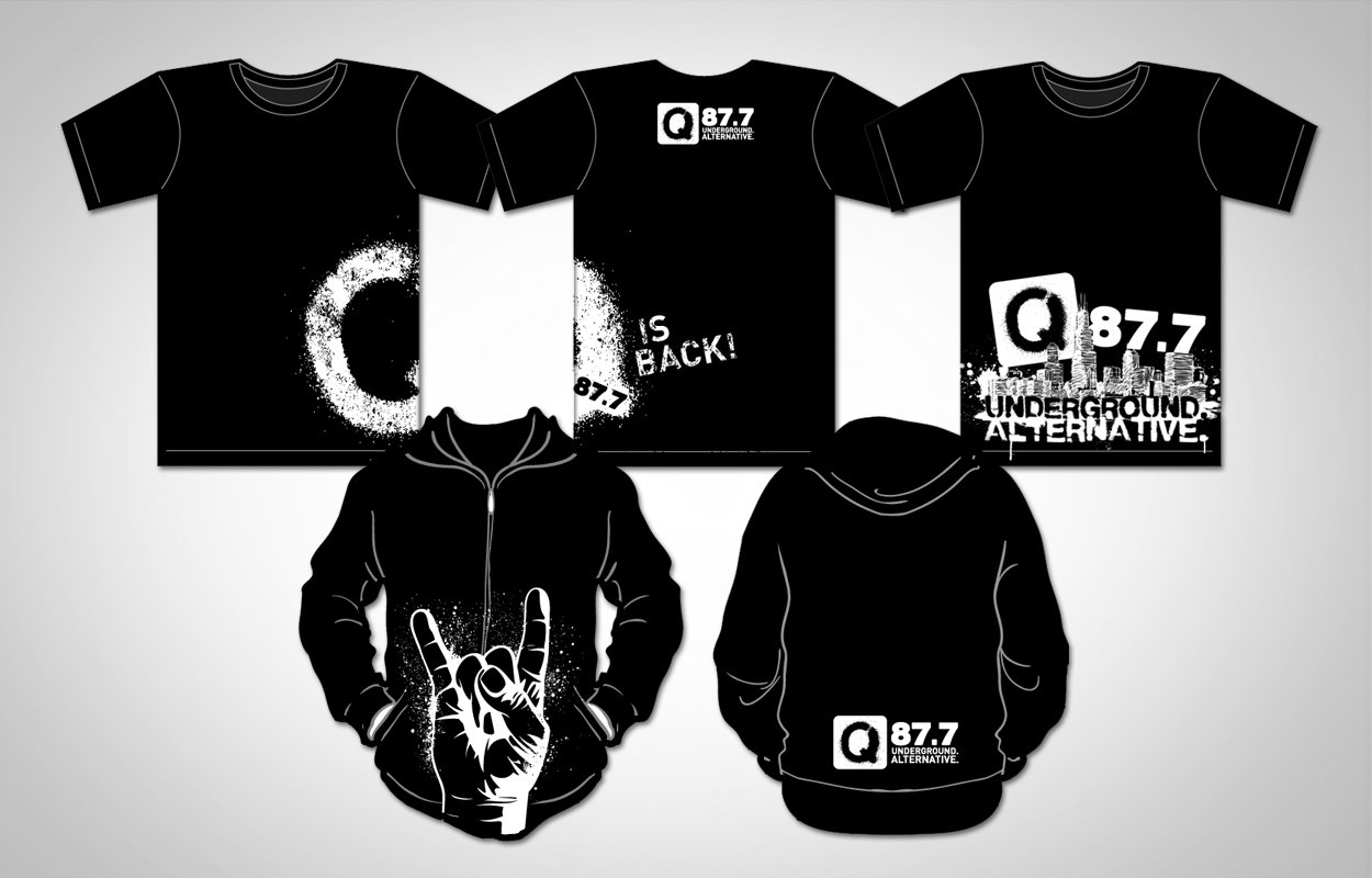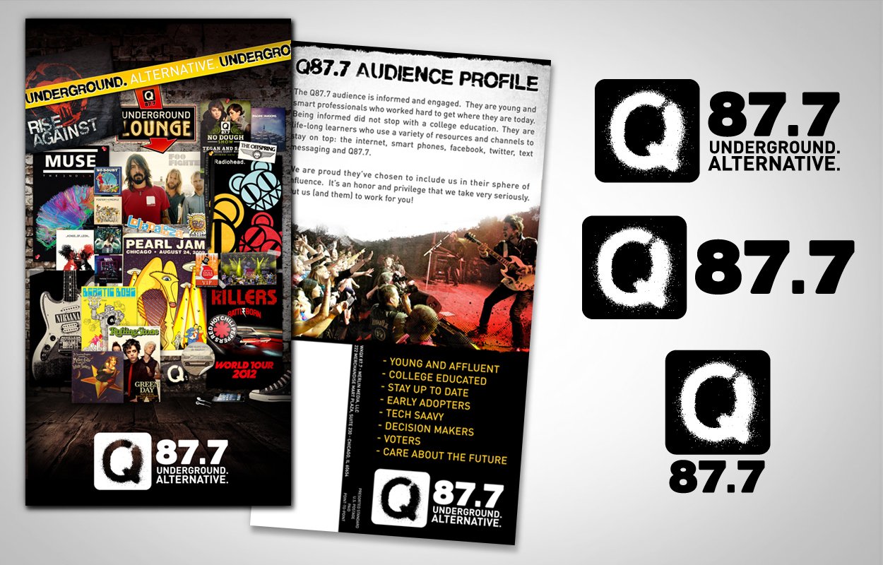 Visual identity for the Chicago radio station, Q87.7. I created the identity and worked in-house on all design projects during its duration from 2012 to 2014. Projects included: logo, promotional materials, apparel, sales materials, mail campaigns, logos and signage for station events and promotions and more.