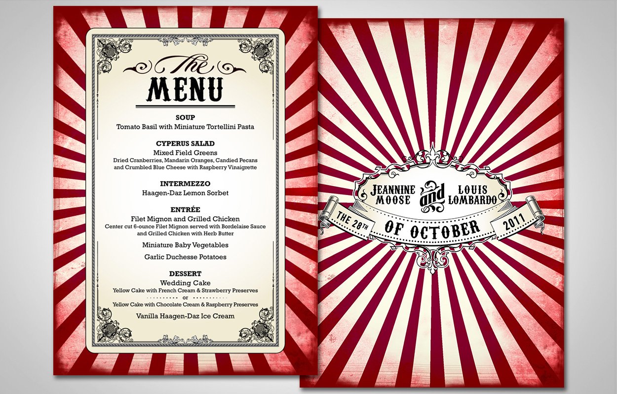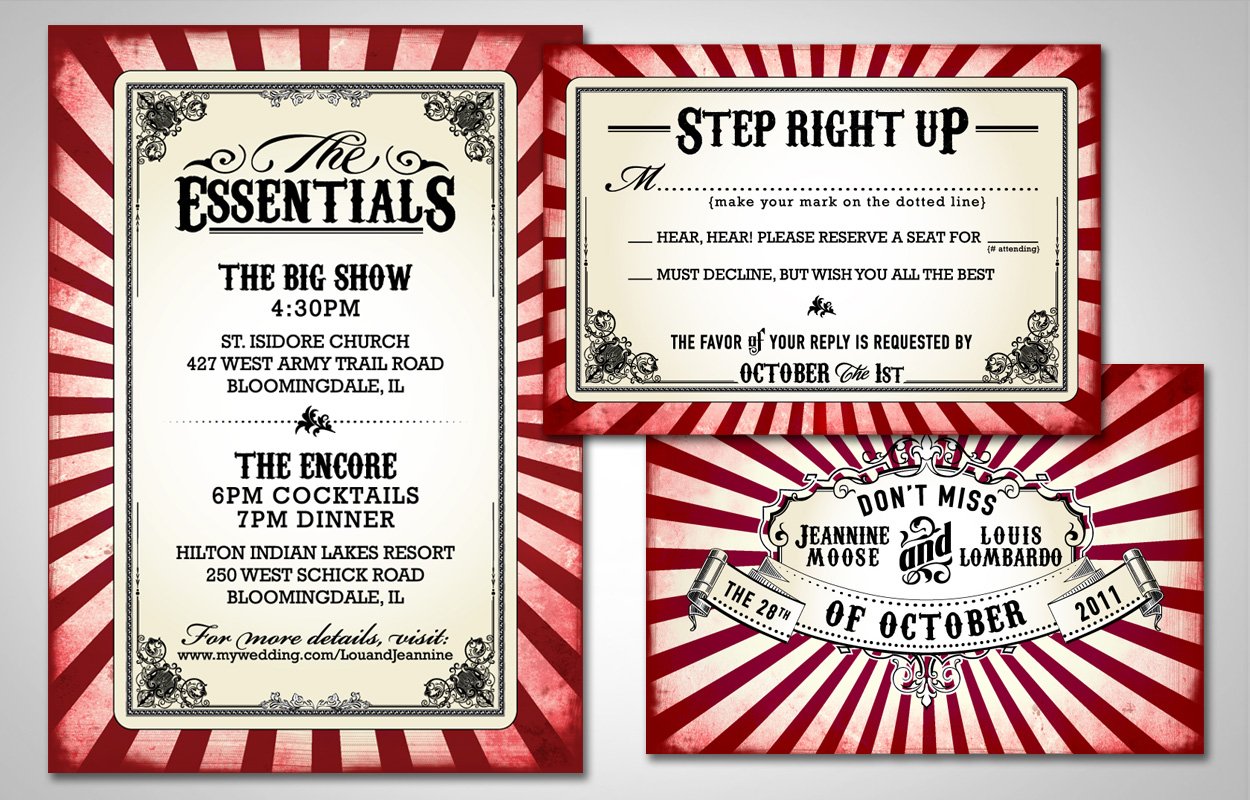 Steampunk themed wedding invitation, RSVP card, reception card, menu, favor tags and more!